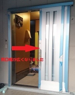 2021年10月15日(金) 半田市 H様 車いすの出し入れがラクになる玄関にリフォーム アウトセット引戸の玄関で開口幅が広がりました! 施工前 完成!壁も塗装しました。 施工前・戸の半分が通常の開口幅です 完成・壁を壊さず広くなりました